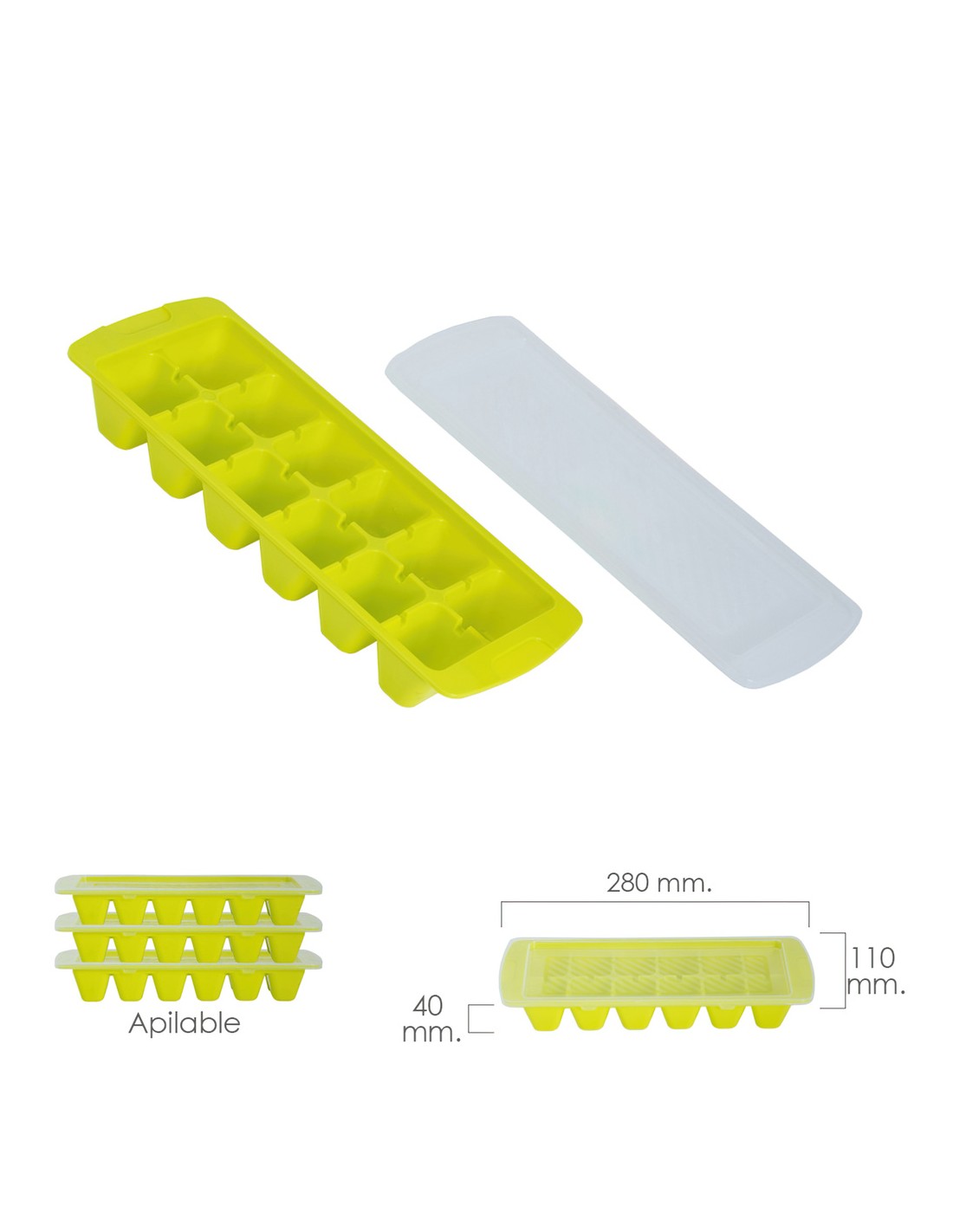- Con tapa, para poder apilar una cubitera encima de otra.
