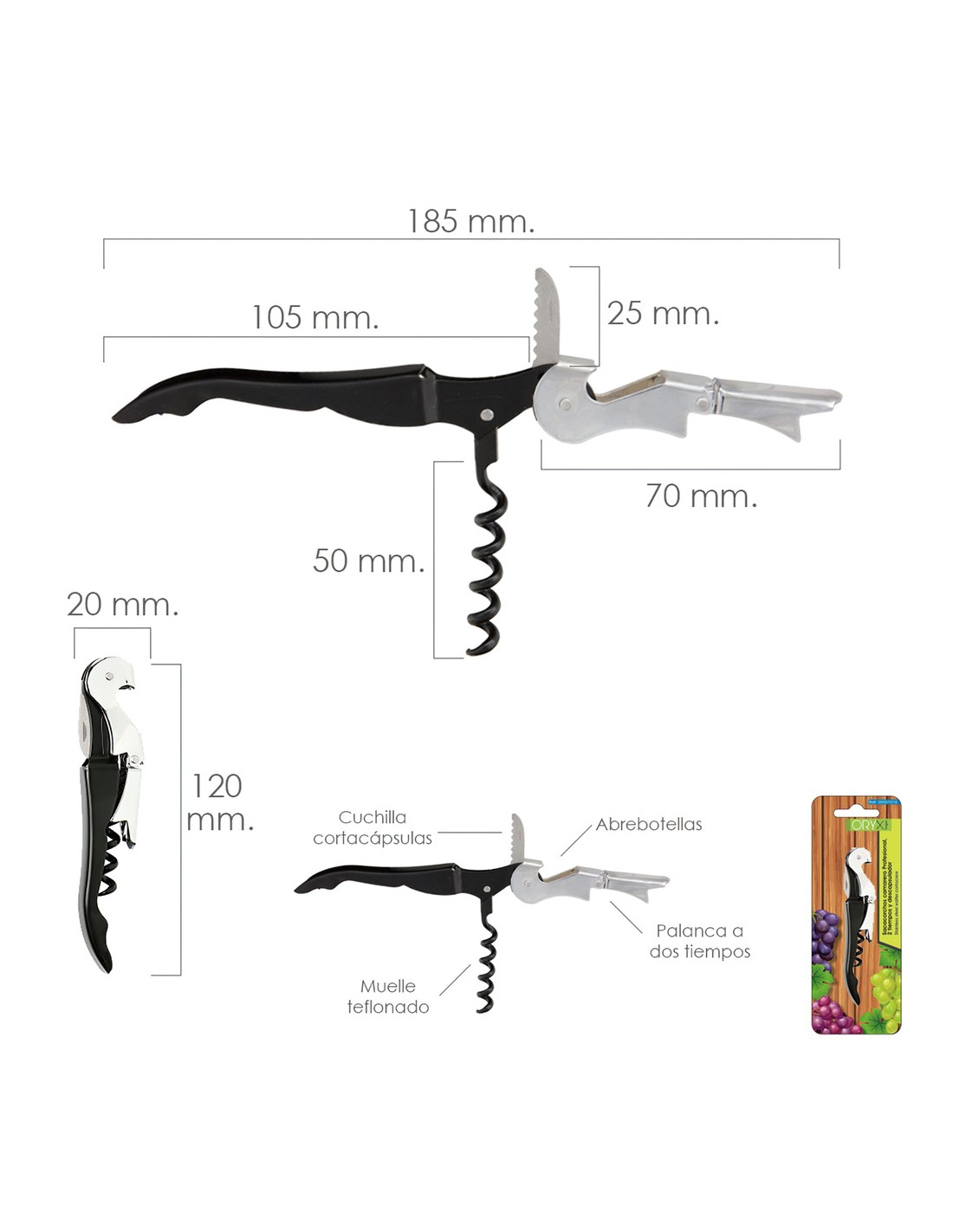 - Incluye abrebotellines y quitachapas.