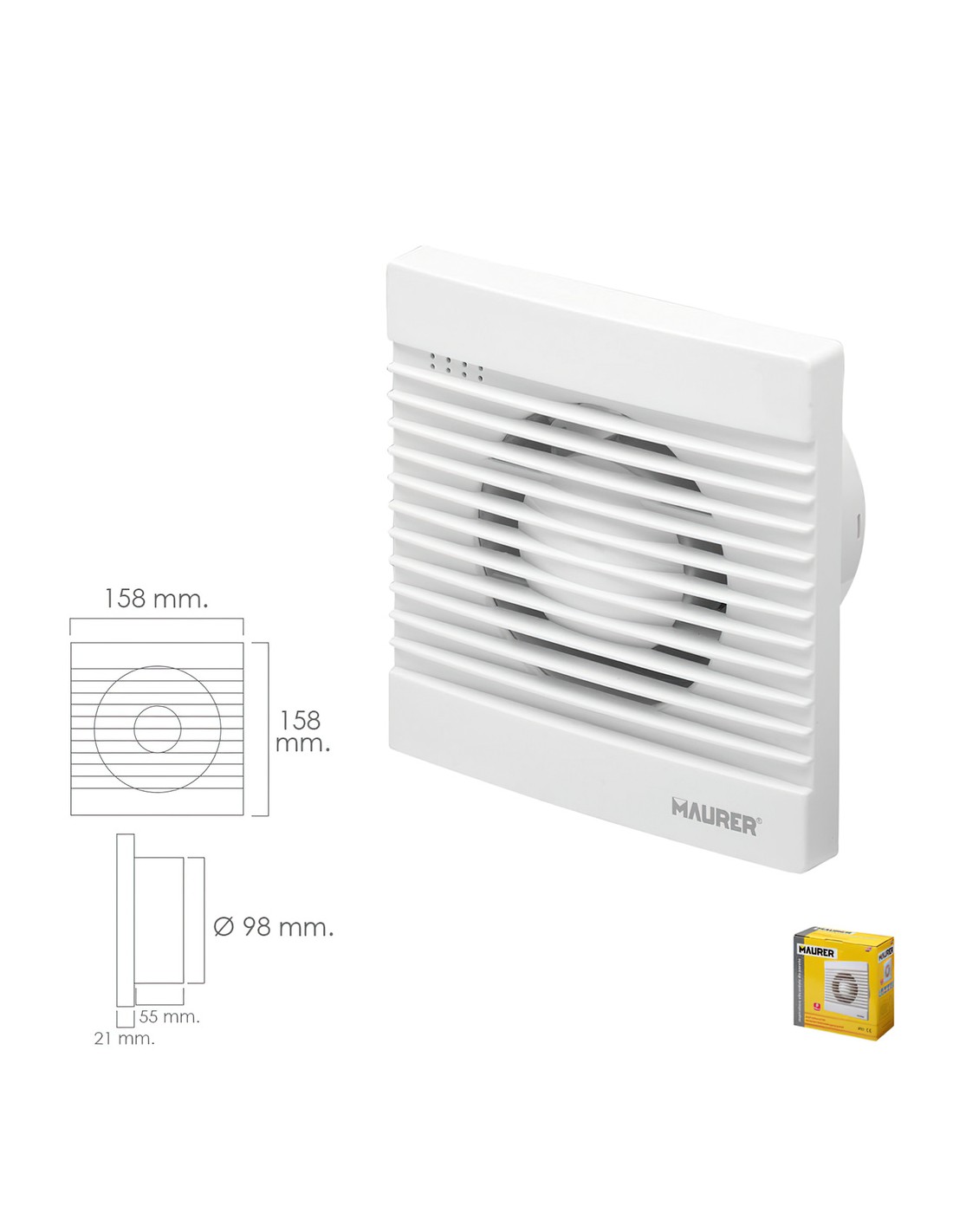 Extractor Humos Baño 13 Watt. Salida Ø 98 mm.