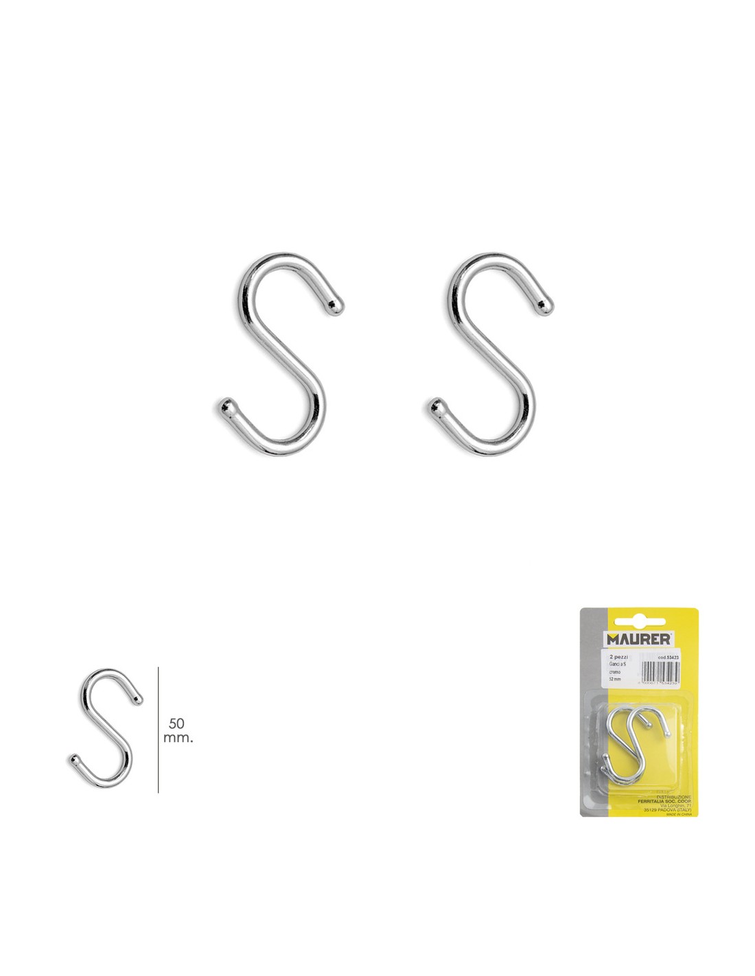 Gancho "S" 50 mm Cromado (Blister 2 piezas) Uso Domestico