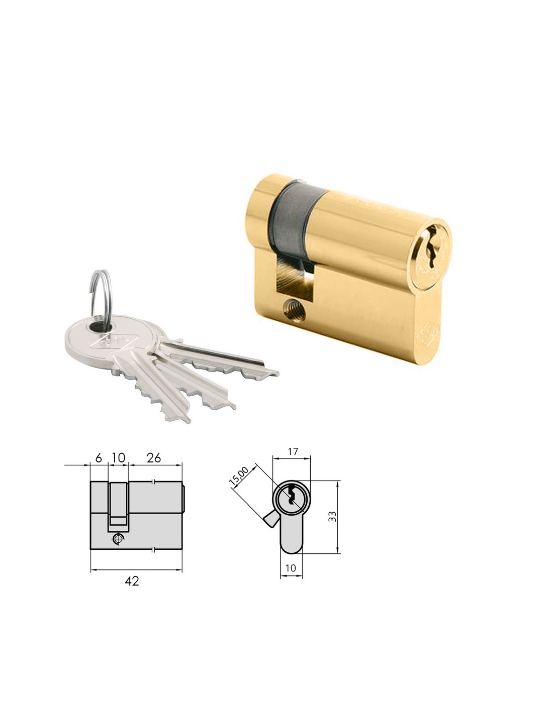 Cilindro CVL 5982T / 26x42 Laton Pulido Leva...