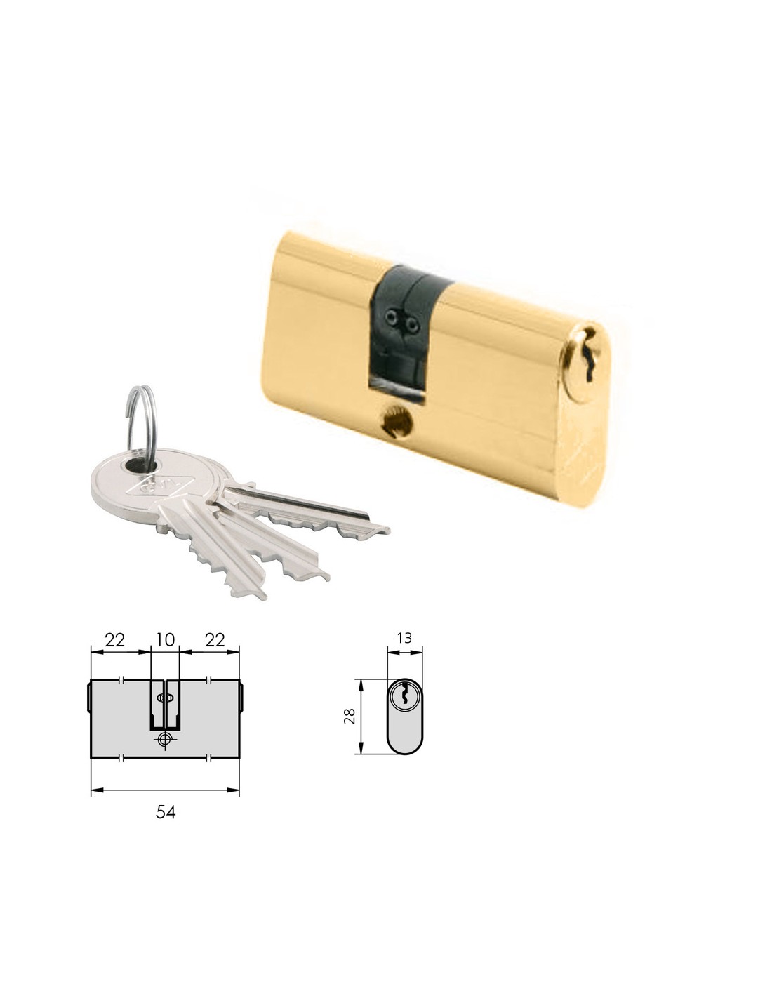 Cilindro Cvl 5963 / 22x22 Laton Pulido Ovalado 2 Levas Cilindro Doble