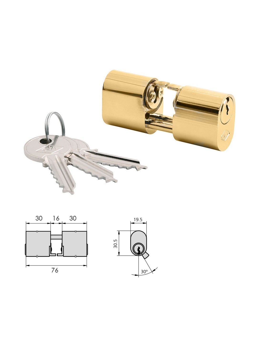 Cilindro CVL 5979 / 30x30 / Laton Pulido Ovalado Levas y Vastagos Cilindro doble