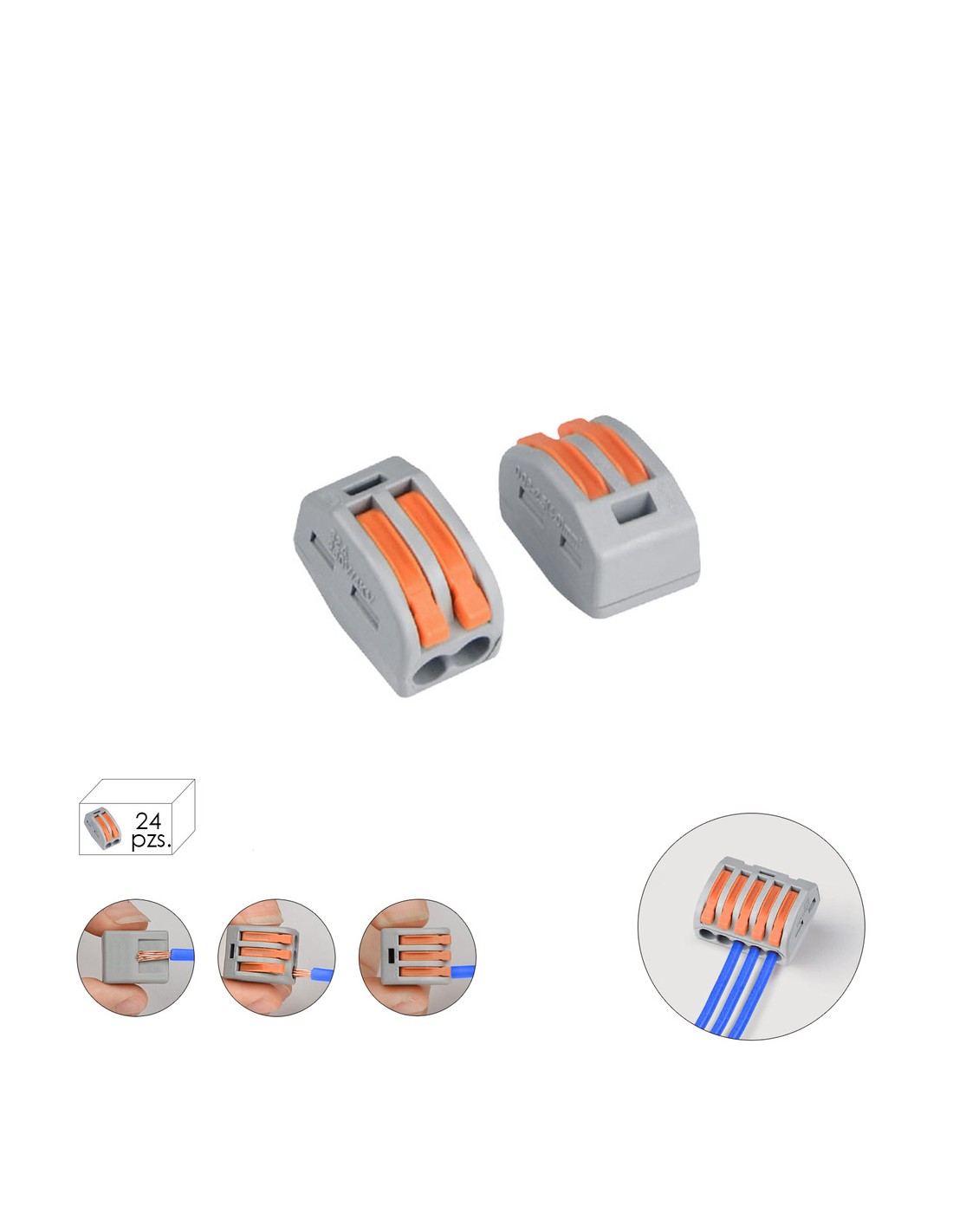 Regleta Conexion Rapida, Conexion Electrica 2 Polos, Ø 4 mm. 32 A, Paquete 24 Unidades