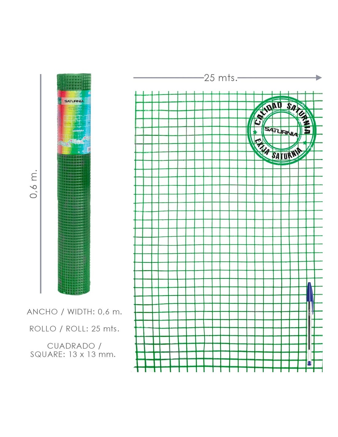 Malla Electrosoldada Plastificada Corral 13x13 / Altura 60 cm. / Rollo 25 metros