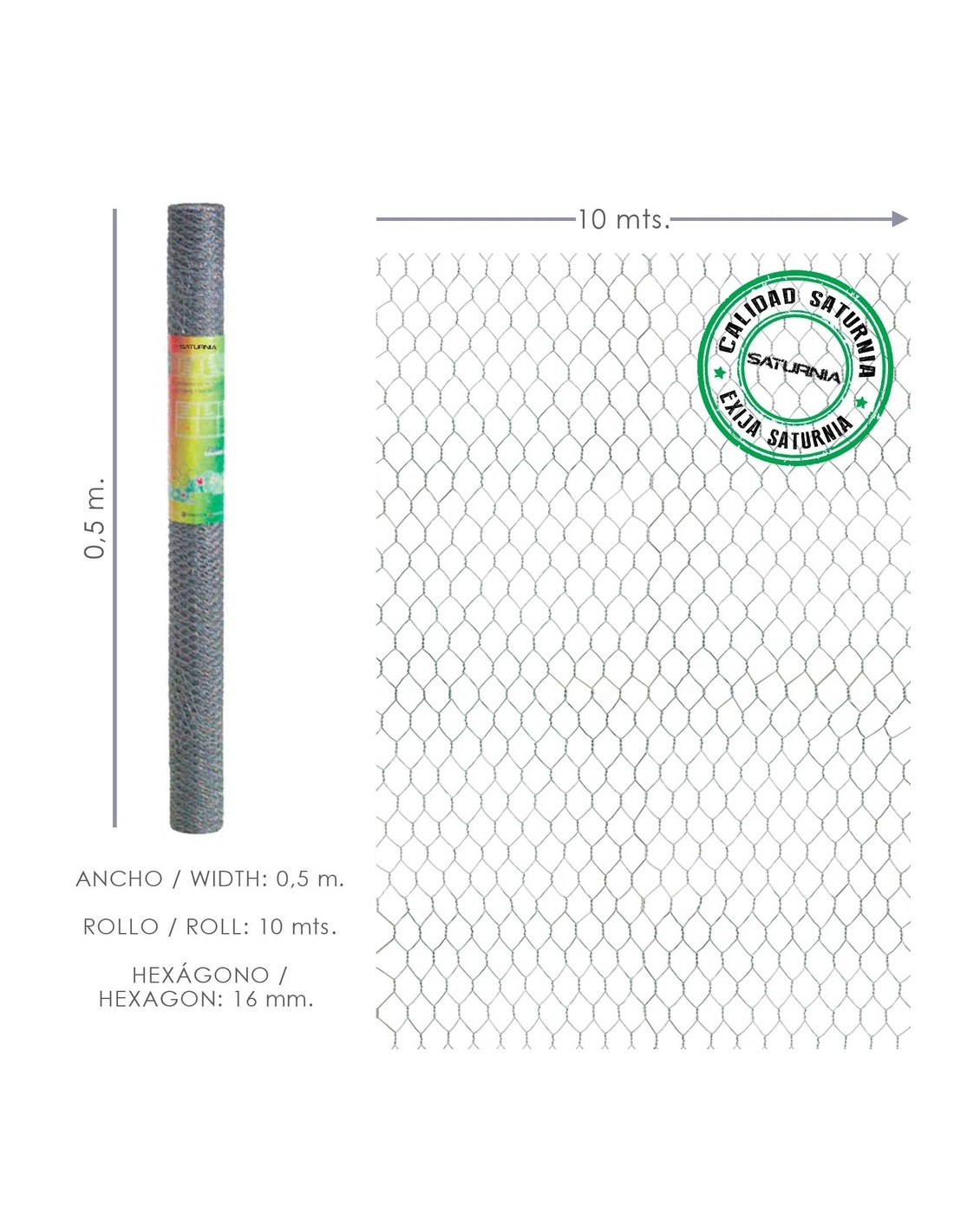 Enrejado Triple Torsion 16 / Ancho 50 cm. Rollo 10 Metros Uso Domestico