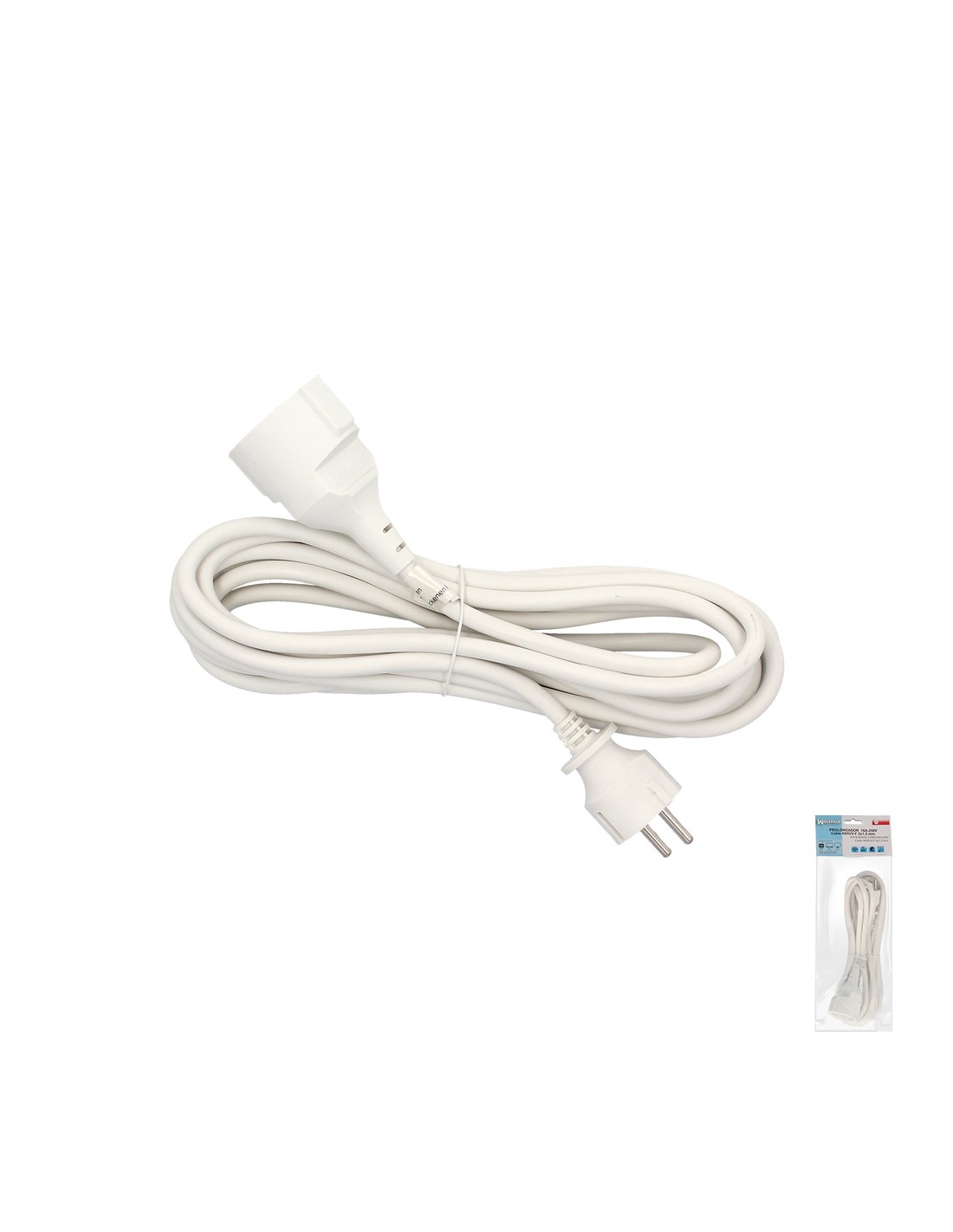 Prolongador Cable Electrico 5 metros. Alargadera 16 A. 3500 W. Conexión Sucko 3 Polos + Tierra. Color Blanco