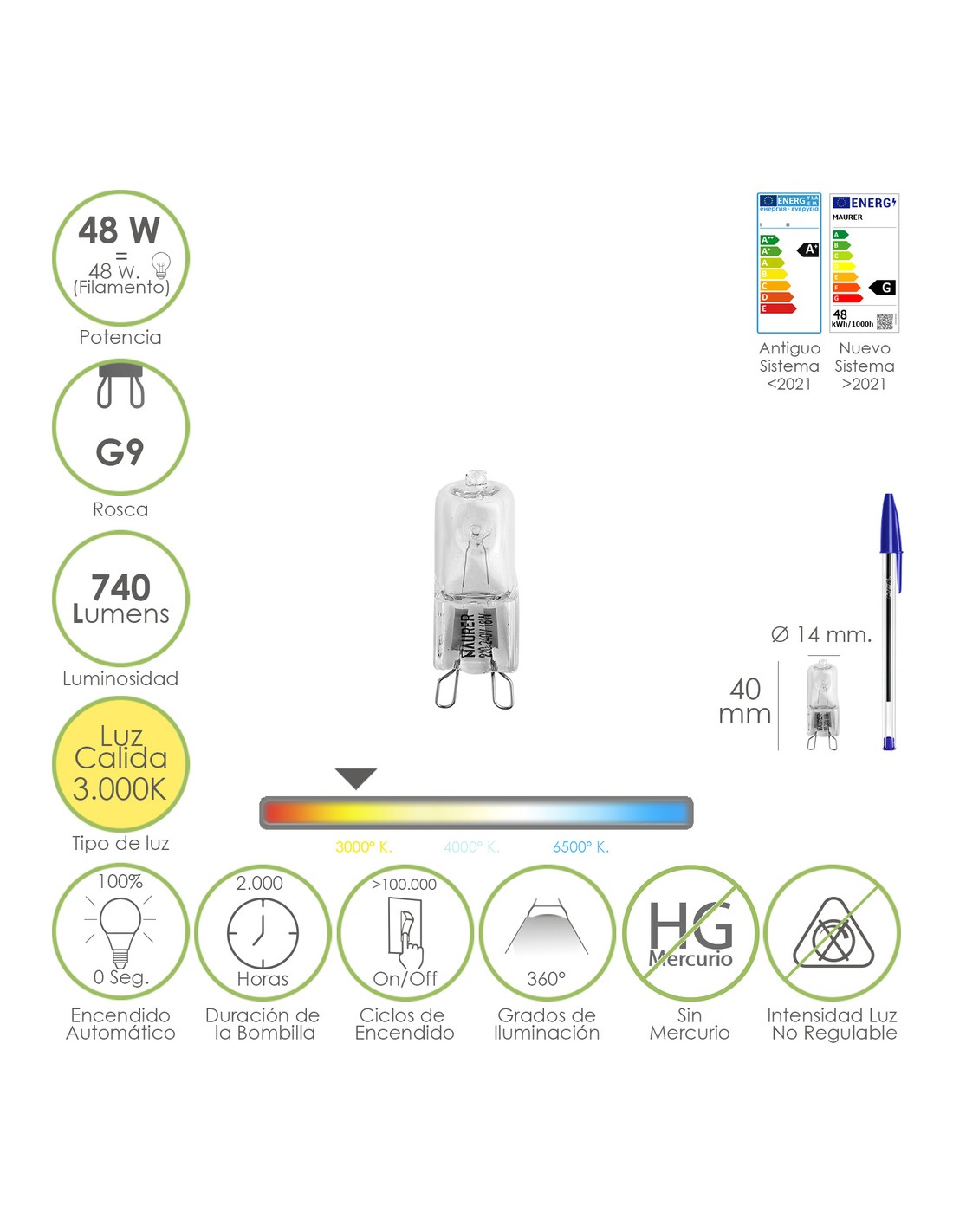 Bombilla Halogena G-9. 48 W. 460 lumenes. Luz...