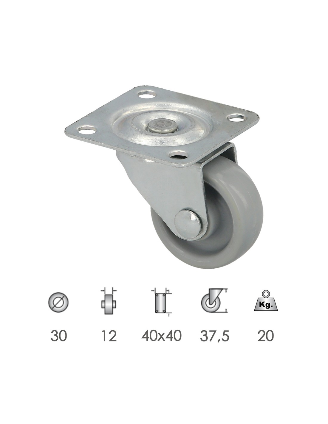 Rueda Domestica Ø 30 mm. Con Placa 40x40 mm.