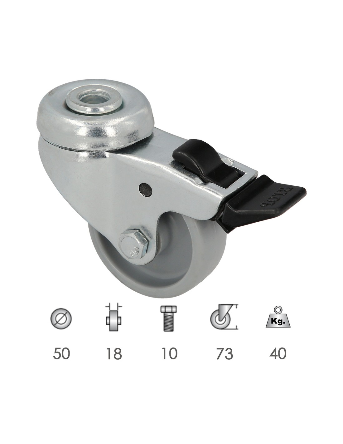 Rueda Domestica Ø 50 mm. Agujero Pasante Ø 10 mm. Con Freno
