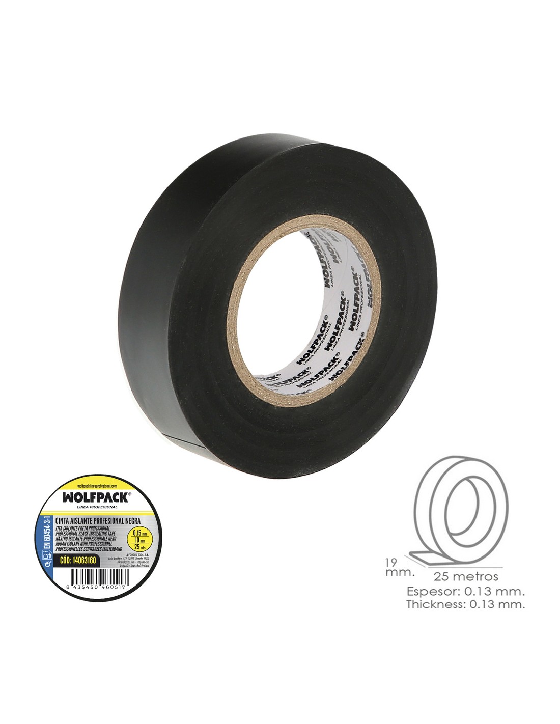 Cinta Aislante Profesional Negra Espesor 0.15 mm. Ancho 19 mm. Rollo 25 Metros Cinta Electricista, Cinta Aislante Cables
