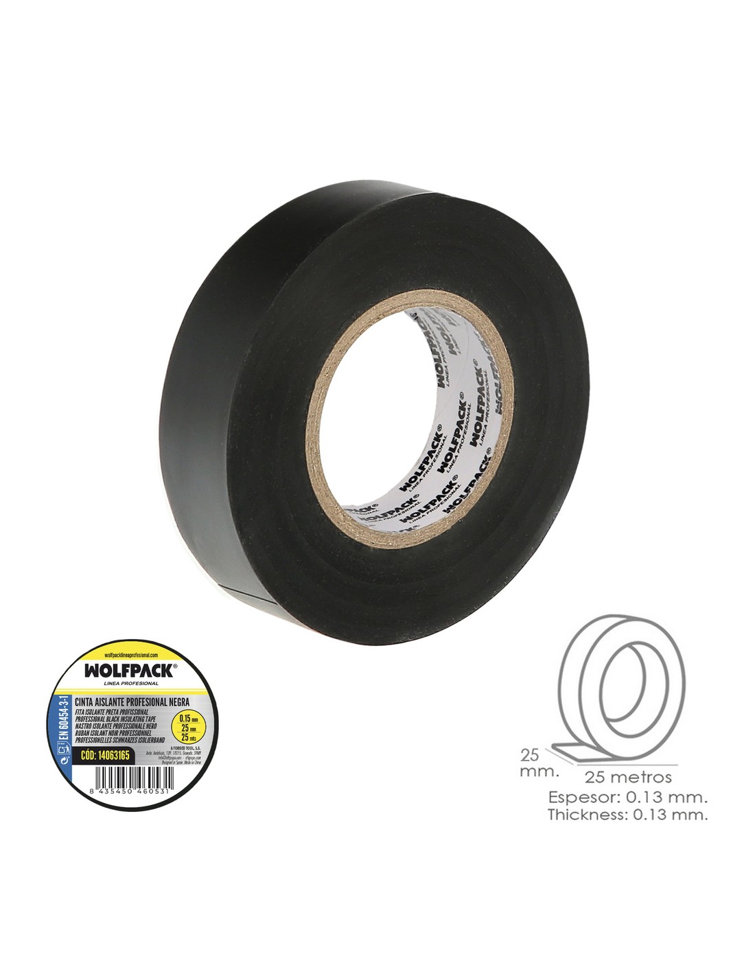 Cinta Aislante Profesional Negra Espesor 0.15 mm. Ancho 25 mm. Rollo 25 Metros Cinta Electricista, Cinta Aislante Cables