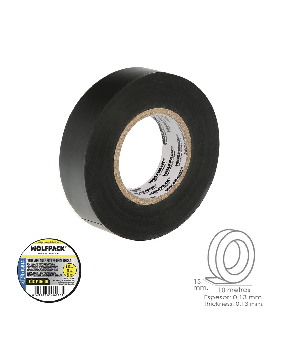 Cinta Aislante Profesional Negra Espesor 0.13 mm. Ancho 15 mm. Rollo 10 Metros Cinta Electricista, Cinta Aislante Cables
