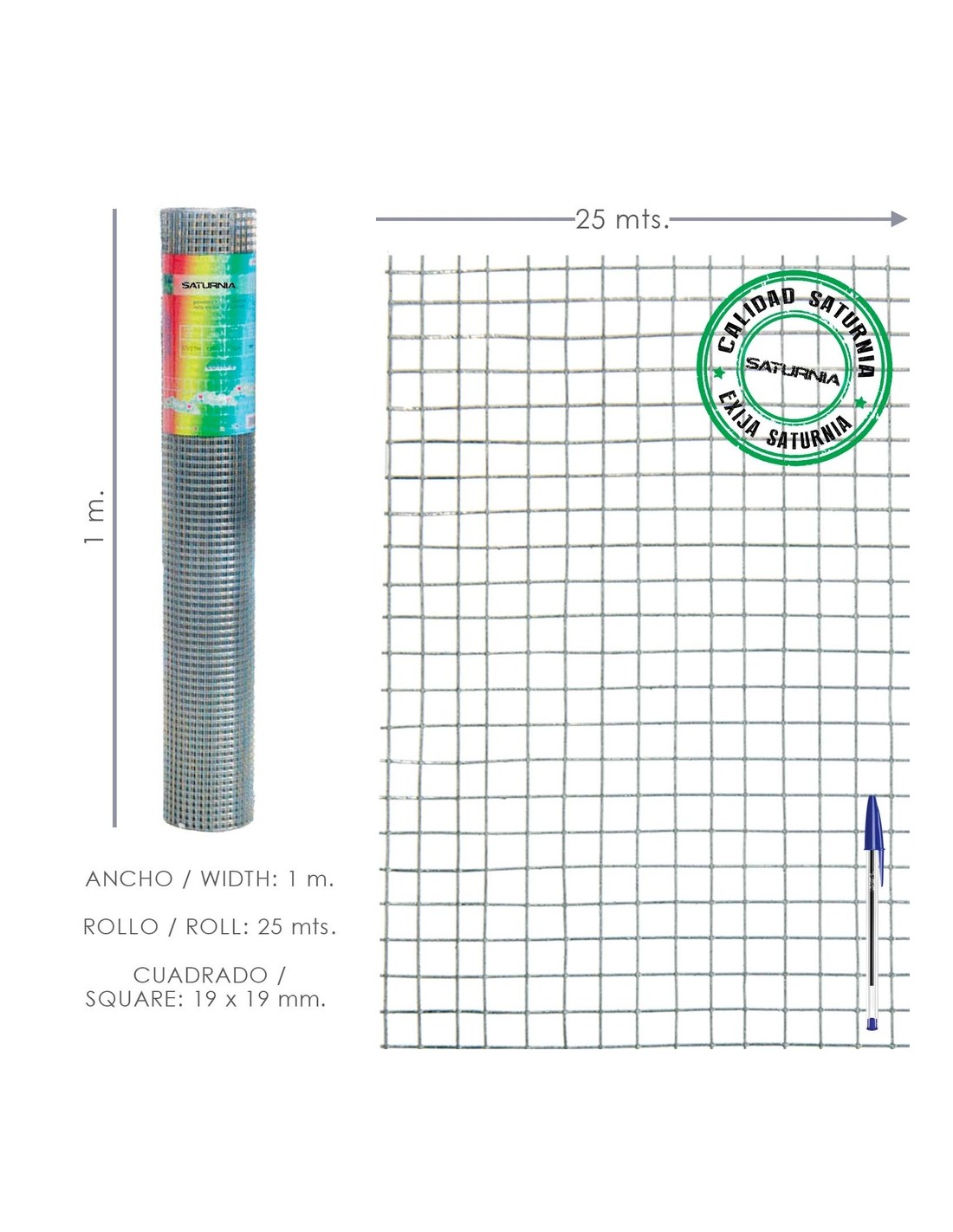 Malla Electrosoldada Galvanizada 25x25 / 1,60 / 100 cm. GD Rollo 25 metros.
