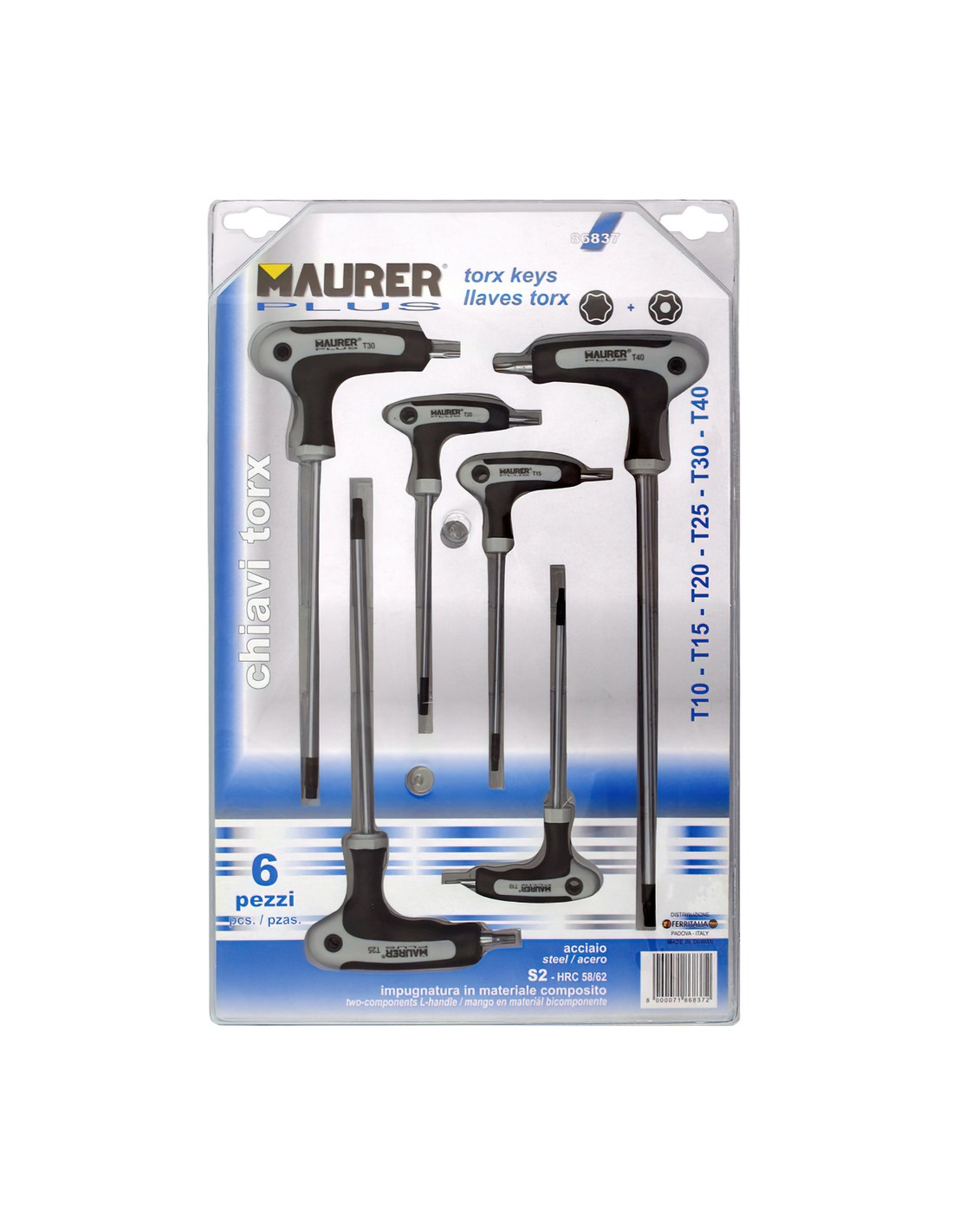 - Medidas: T10, T15, T20, T25, T30, T40.