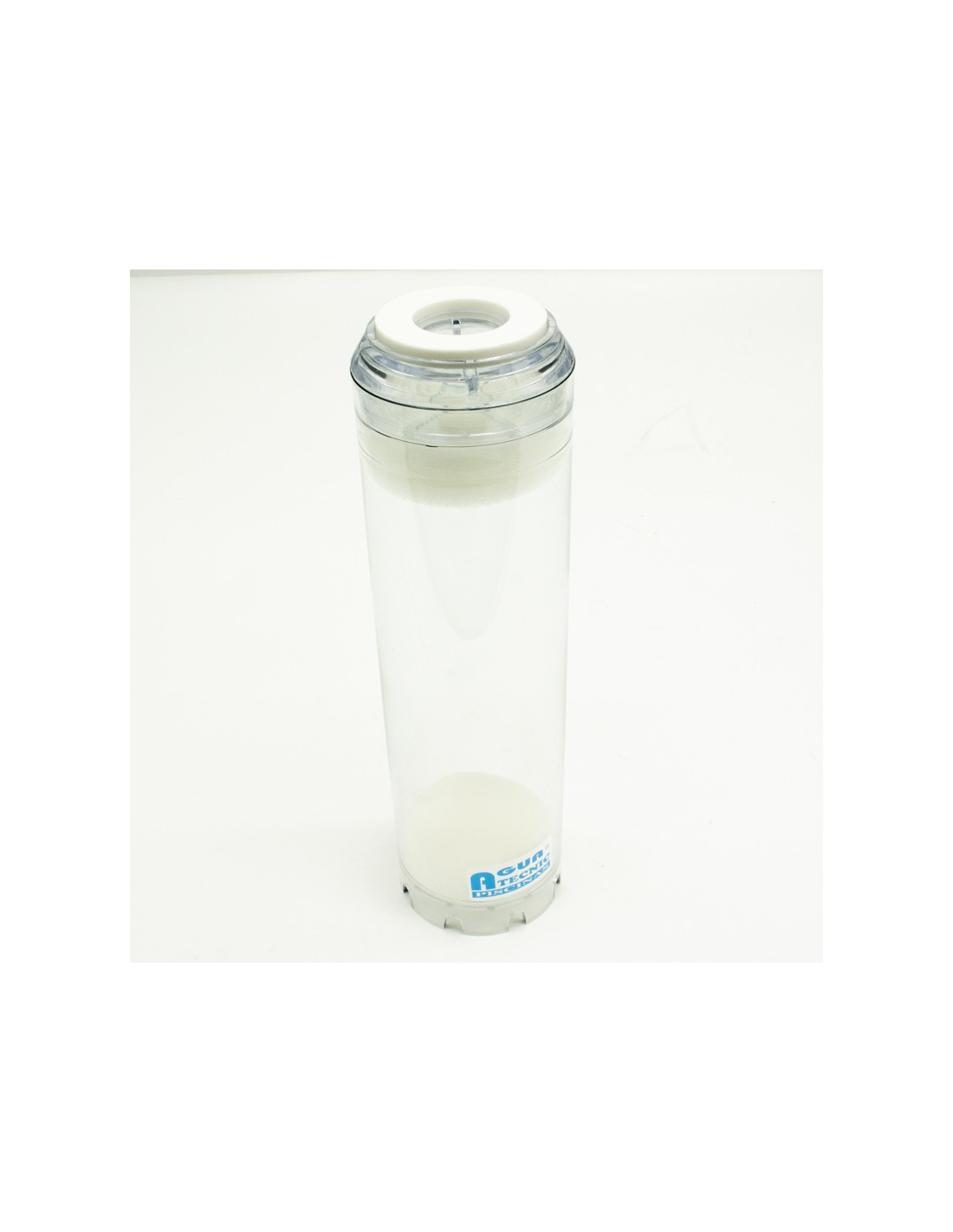 Contenedor transparente vacio de 10" para rellenar con material filtrante, carbon o resina.