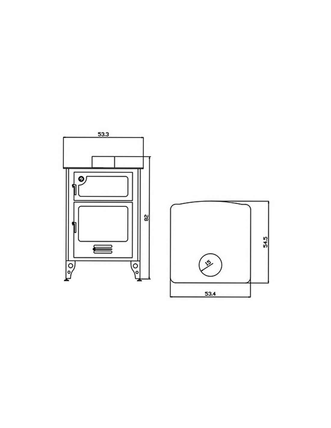 Estufa leña con horno y puertas.