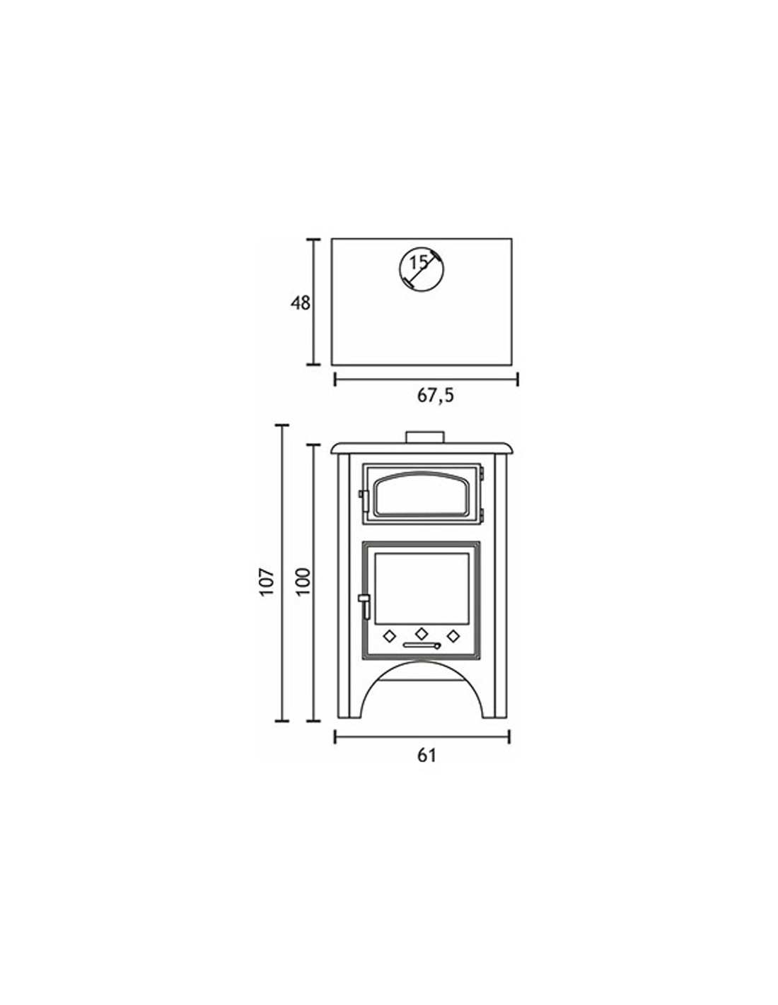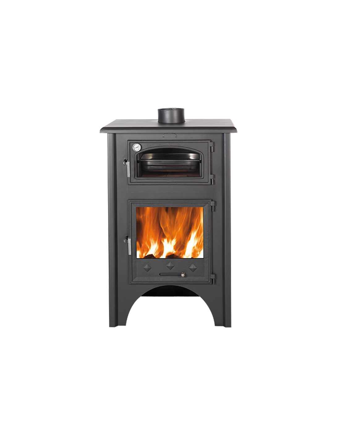 Estufa leña con horno y puertas.