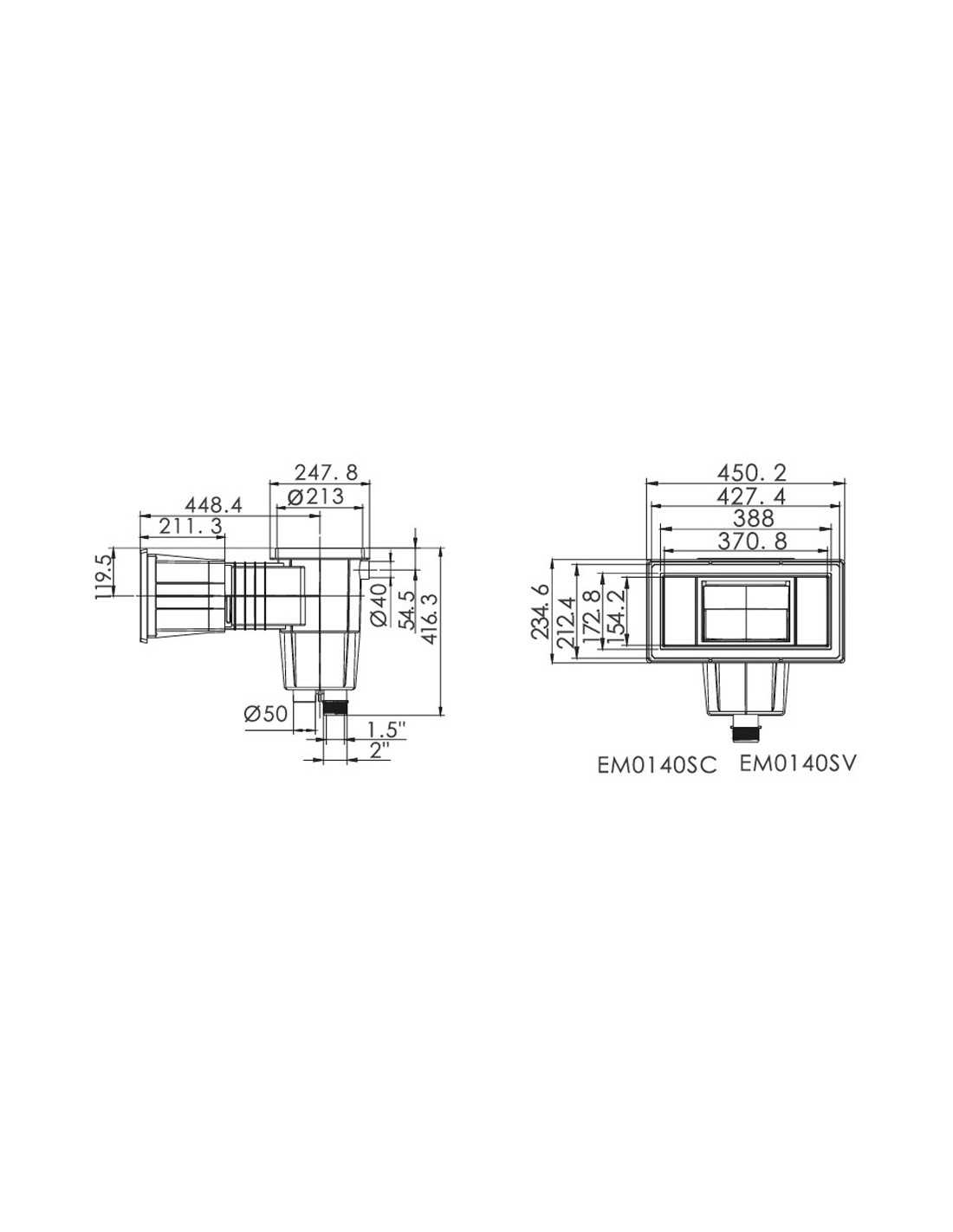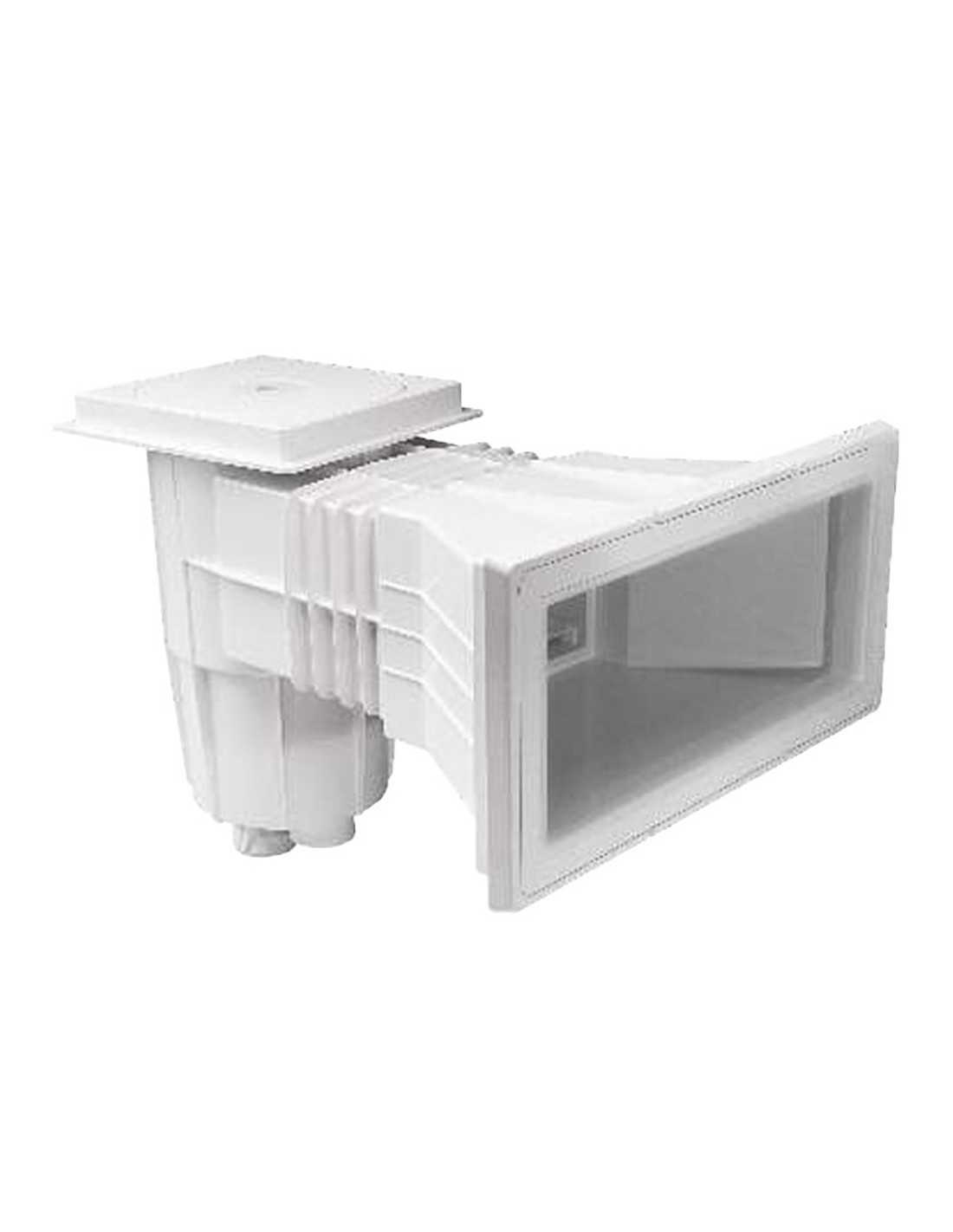 Skimmer boca ancha para instalacion en hormigon y marco superior cuadrado con tapa redonda.