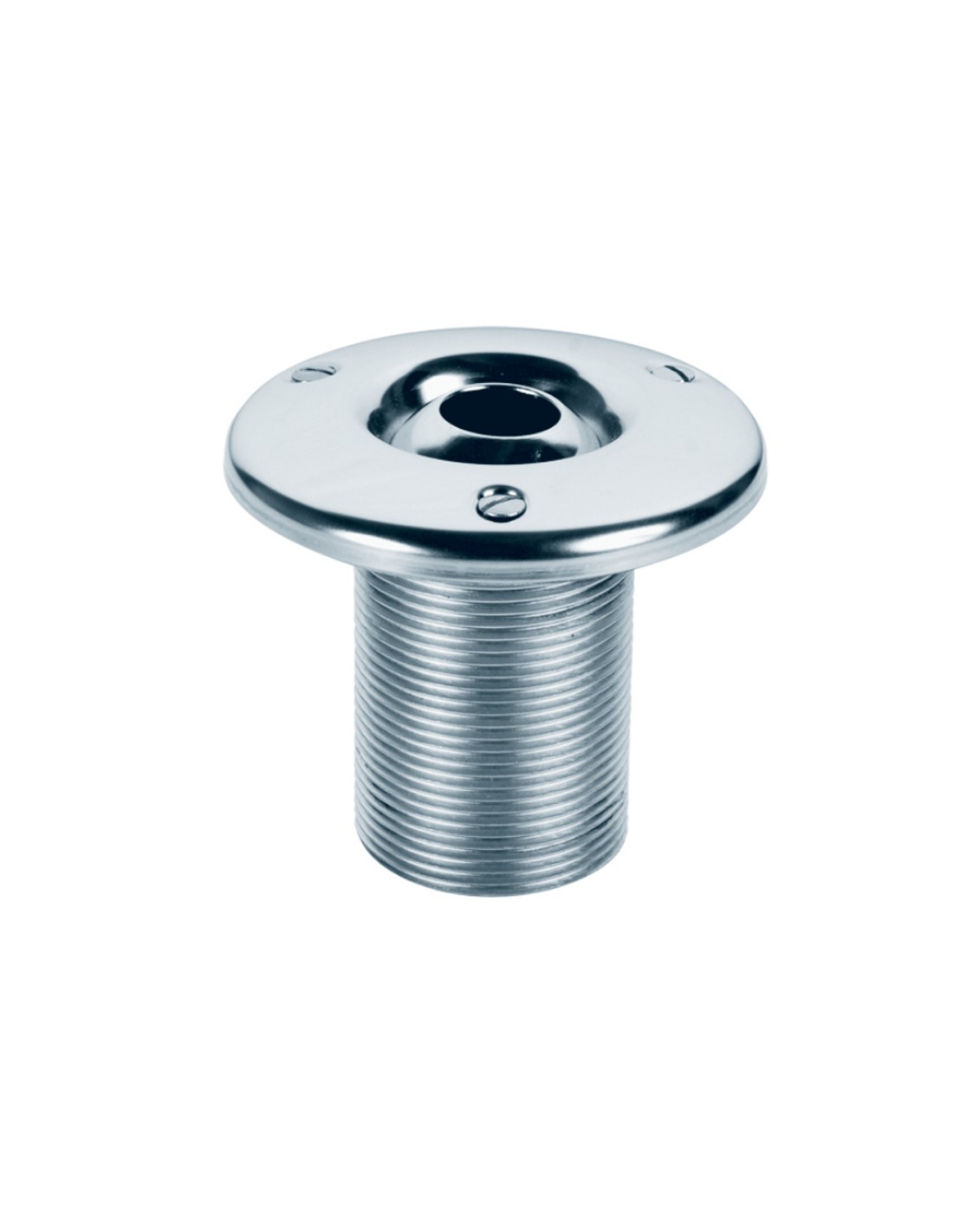 Rosca exterior 11/2”. Fabricada en acero inox AISI-316. Cauldal máx. recomendado 4,5 m3/h según norma EN 16582-1 y EN 16713-2 si se instalan como máximo a 500 mm por debajo del nivel del agua de la piscina. Bola Ø 20 mm.