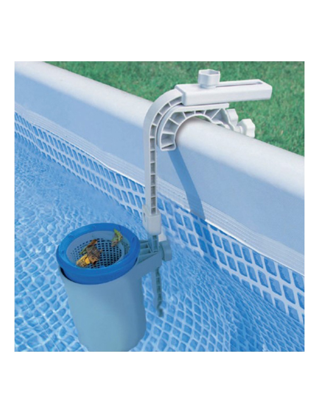 Skimmer de superficie para piscinas desmontables, se conecta al equipo de filtracion, incluye varios soportes para adaptarse a diversos tipoi de piscinas.