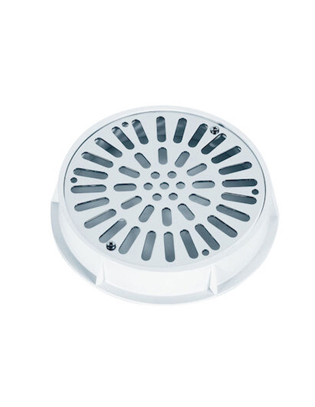 Reja de drenaje D-200mm para piscinas de hormigon, marco en ABS blanco y reja en AISI316.