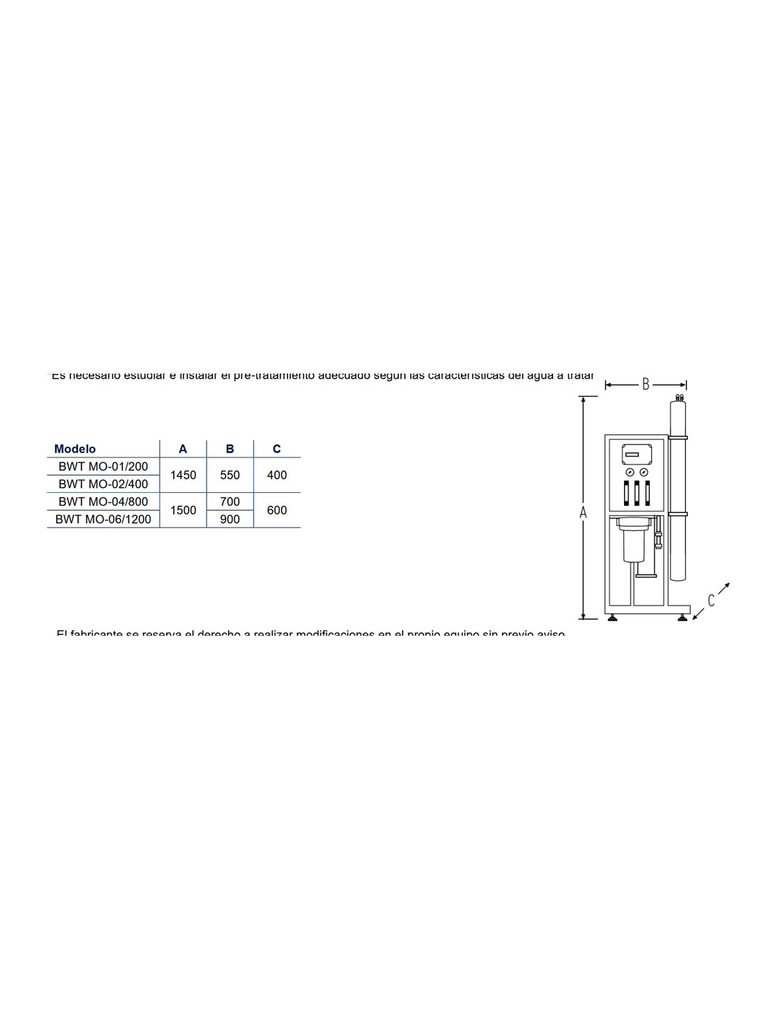 IMPORTANTE: Es necesario estudiar e instalar el pre-tratamiento adecuado según las características del agua a tratar.
