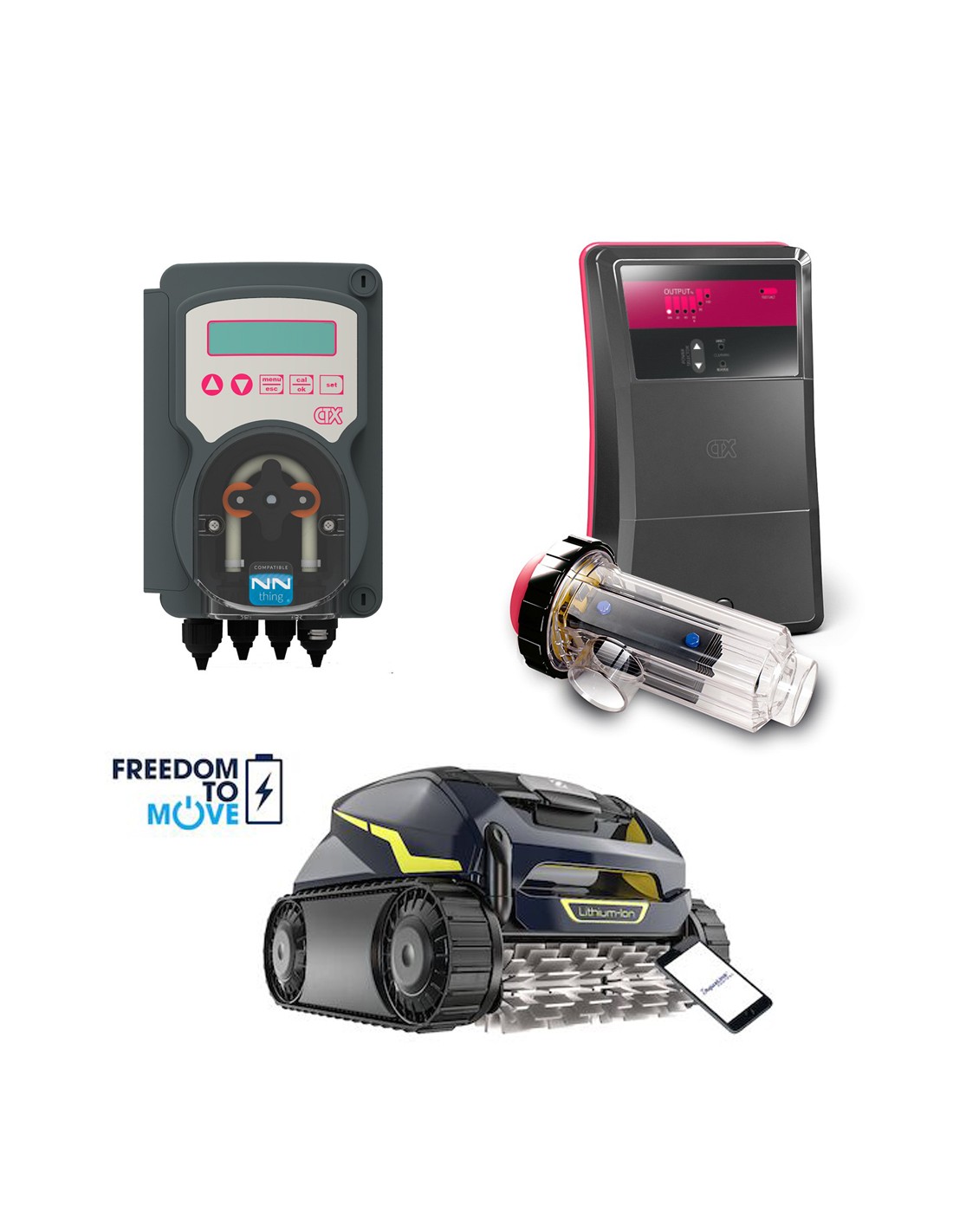 Cloracion salina ZODIAC Gensalt OE 25 gr/h WW000096 + + bomba dosificadora PH DOSIM PH Compact 1.5 l/h c/electrodo + limpiafondos electrico DOLPHIN Energy 200 suelo/pared/lf