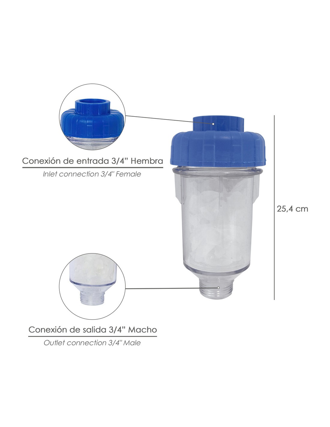Elimina impurezas del agua y da protección contra incrustaciones de cal.