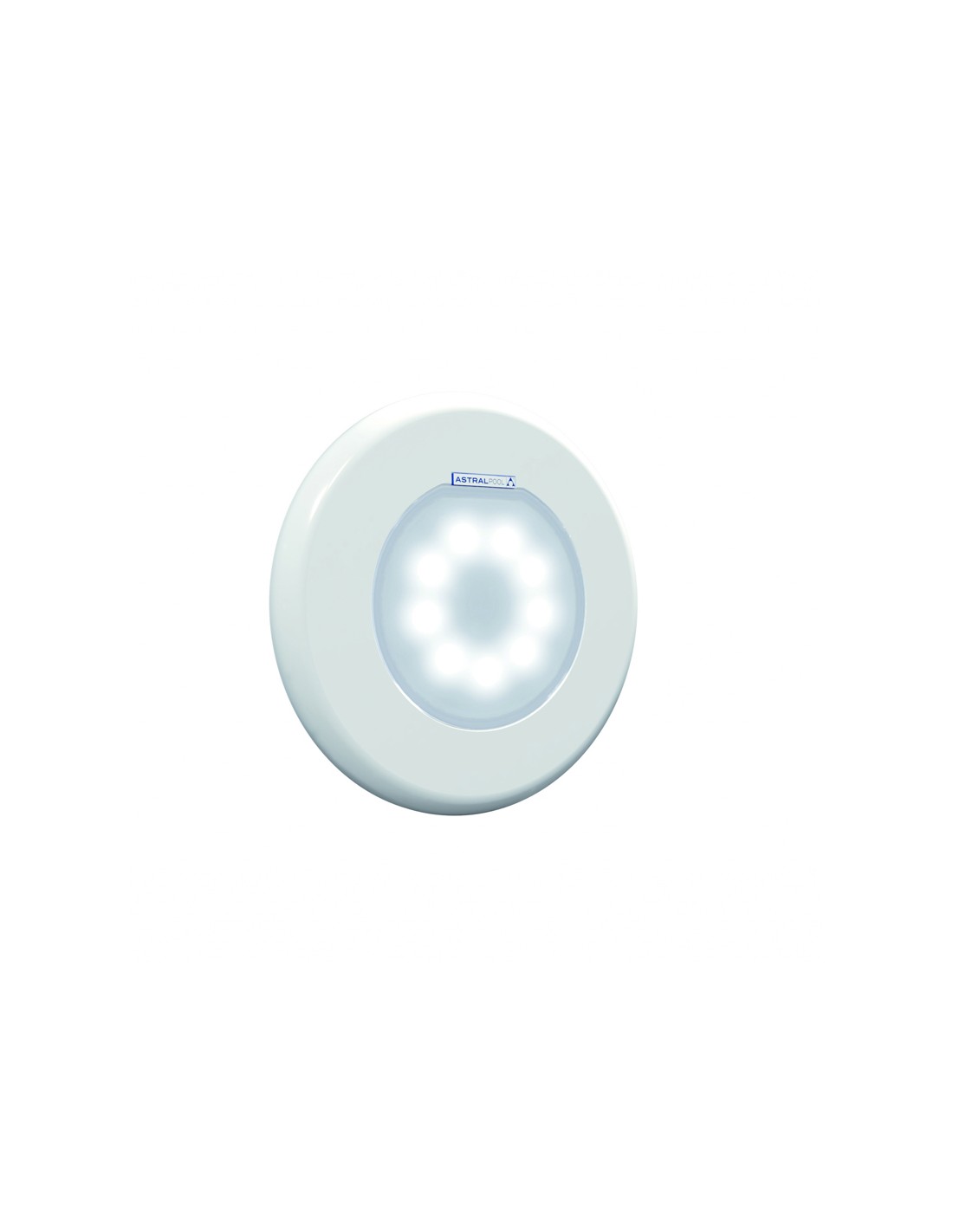 Conjunto de embellecedor y punto de luz blanco 71203+71209, en ABS blanco, ideal para obtener altos niveles de iluminacion en piscinas y spas.