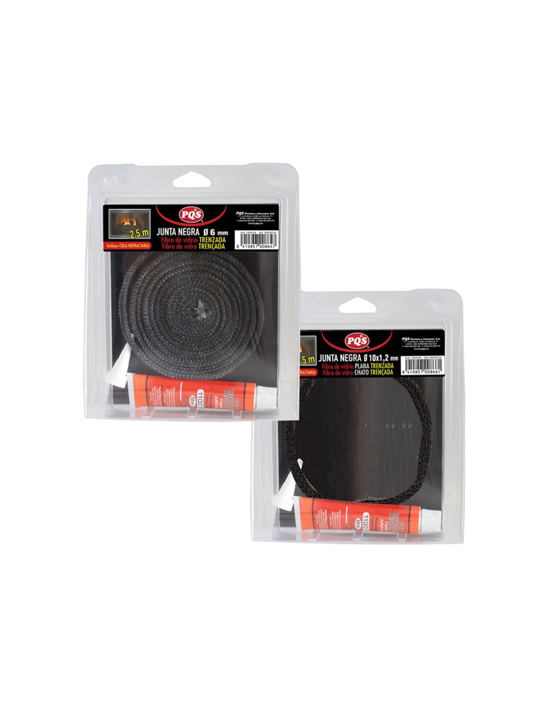 Junta estufa p/puerta 10mm PQS 2.5mt junta fibra vidrio trenzada y pegamento 13030180