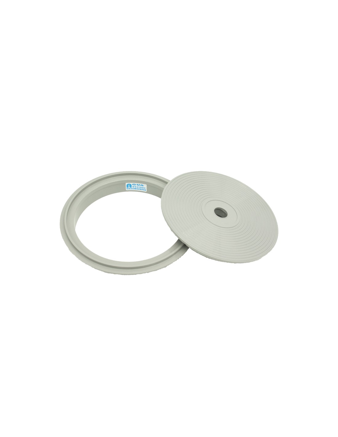 Tapa skimmer circular con marco circular gris.