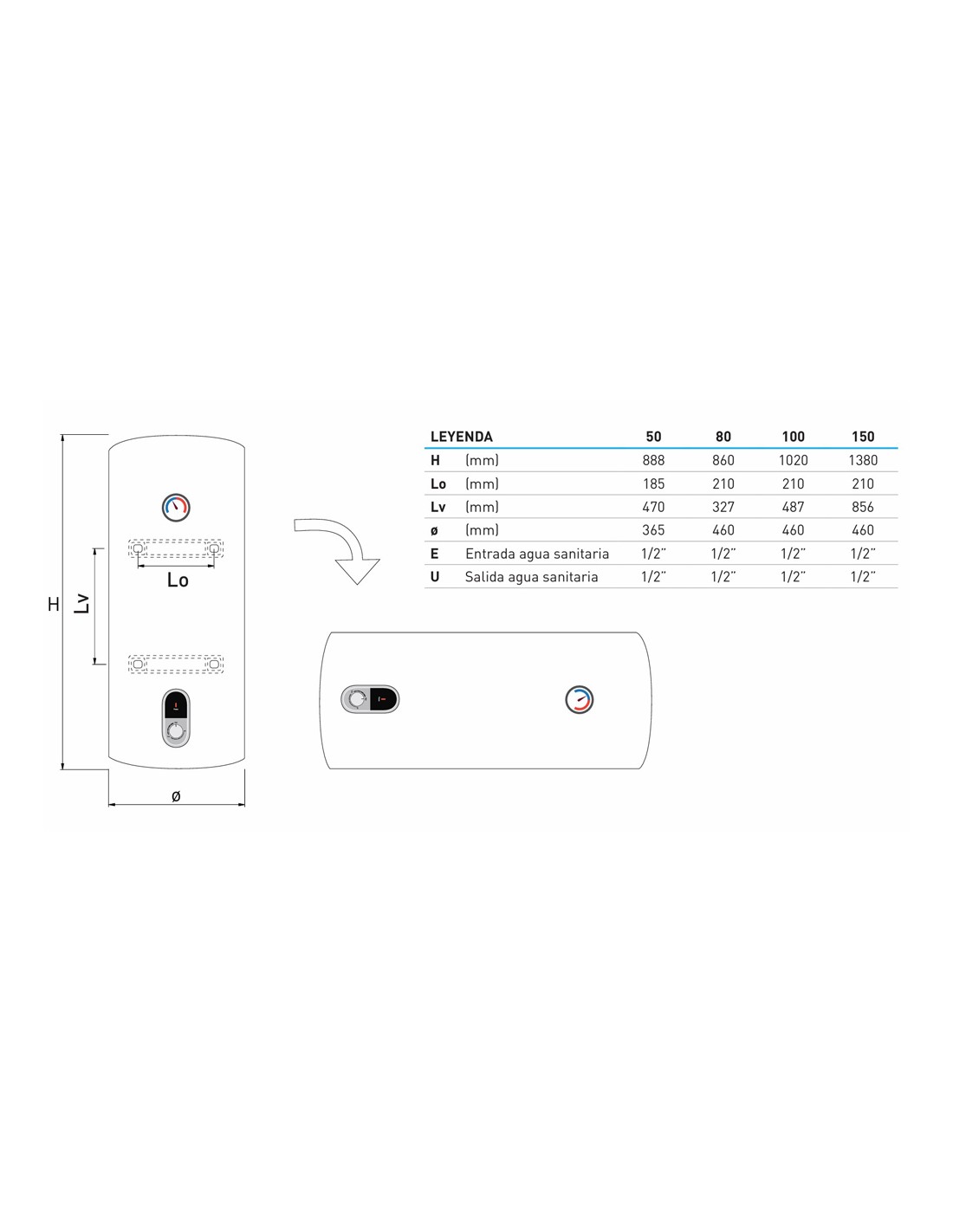 Termo electrico acs SIME Lago 50lt vertical/horizontal 8115600