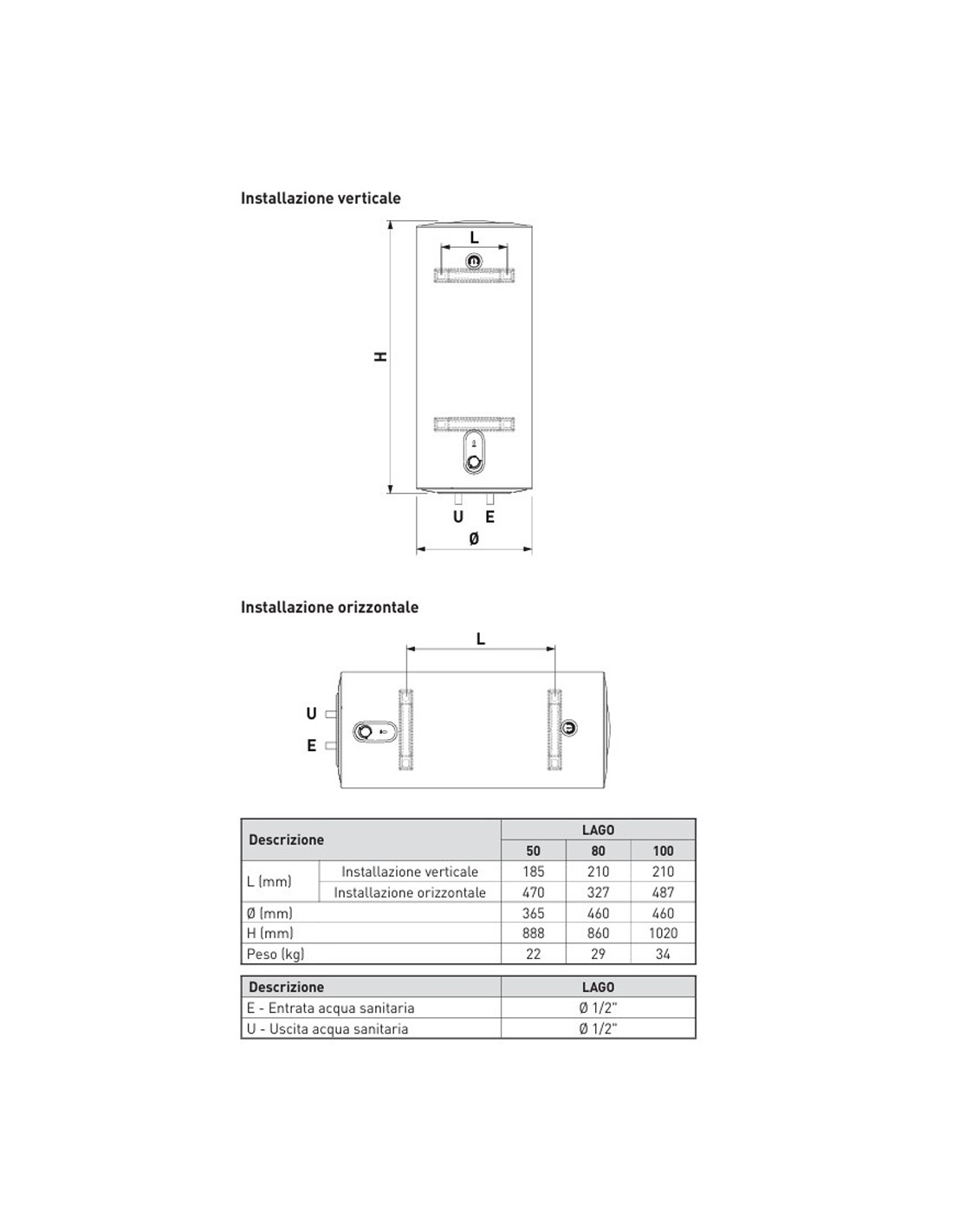 Termo electrico acs SIME Lago 80lt vertical/horizontal 8115601
