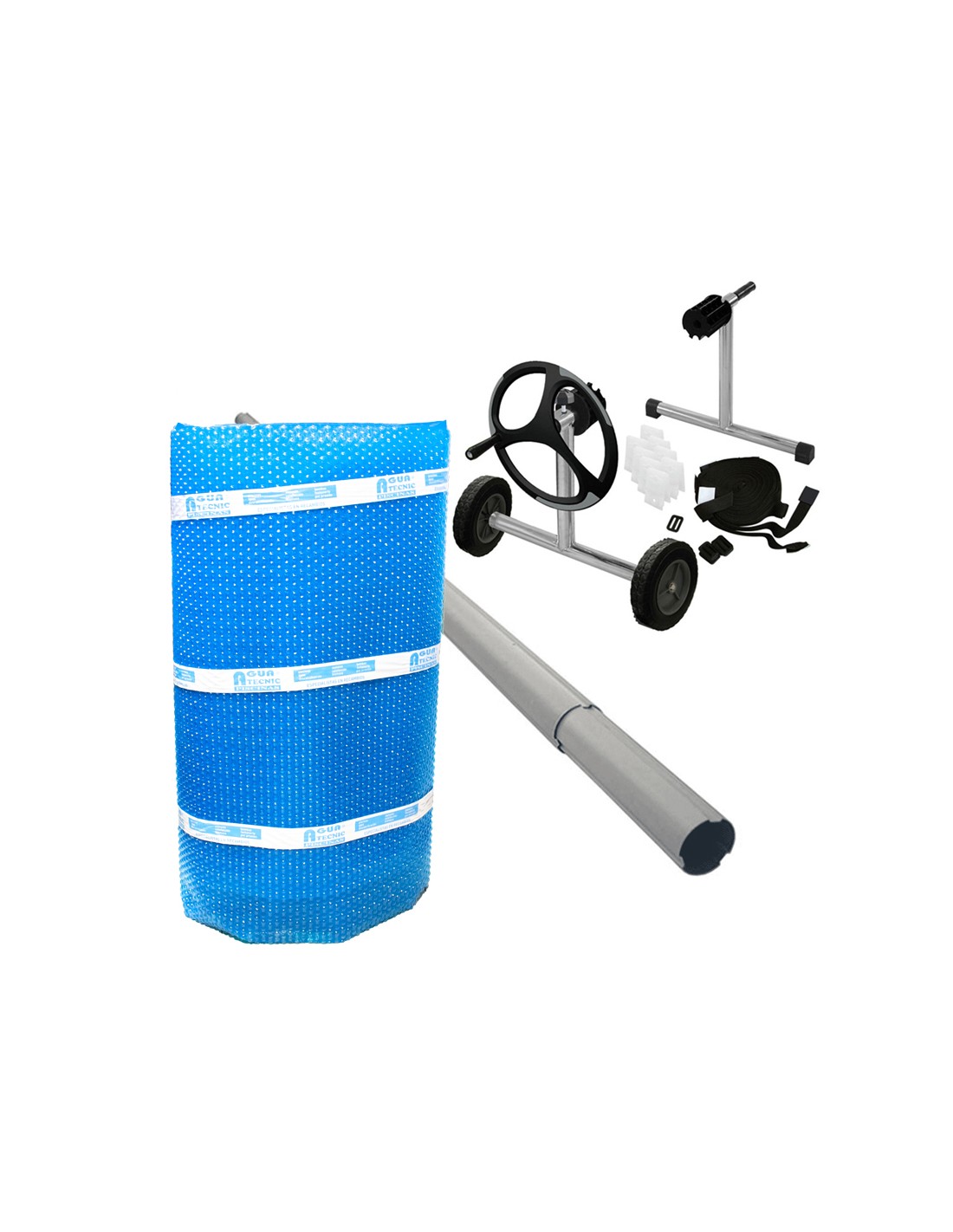 Cobertor solar 400mc GEOBUBBLE + enrollador D80 telescopico de 4.00 a 5.50mt.