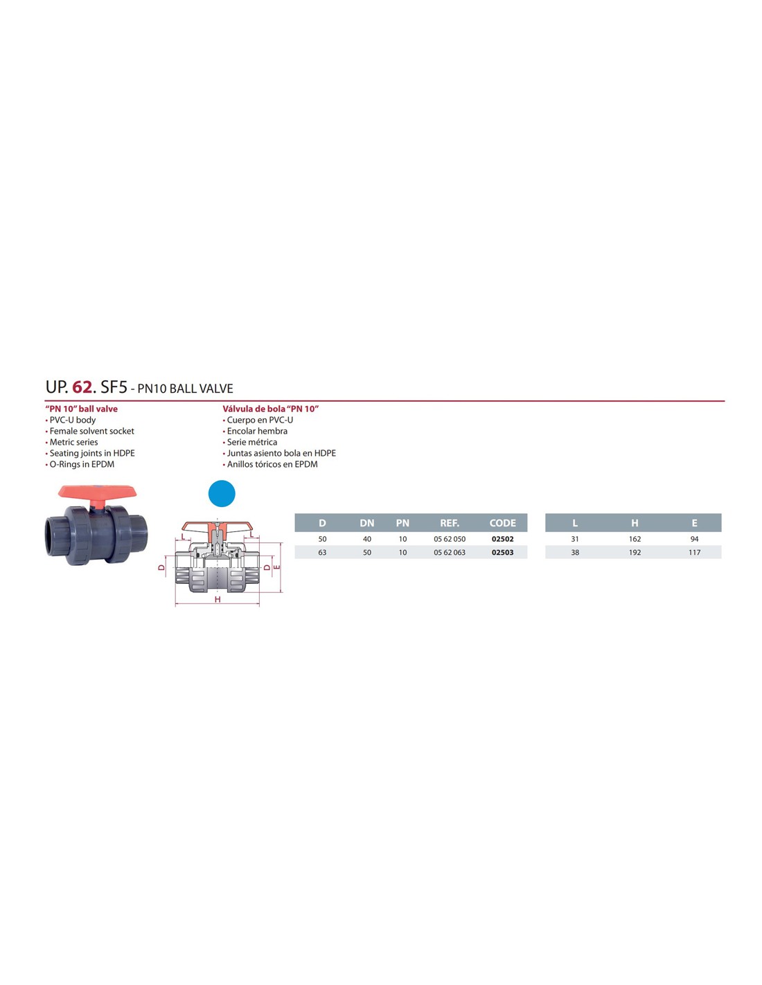 Valvula bola PVC-U H-H 63mm PN10 CEPEX serie PN10 02503 (presion)